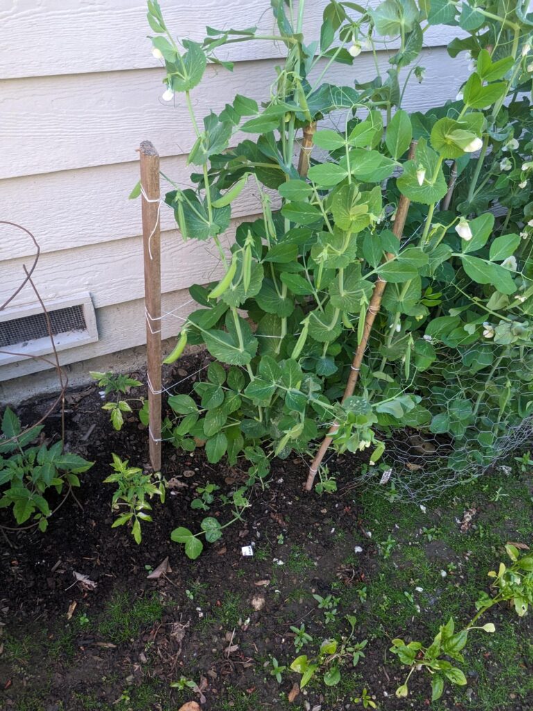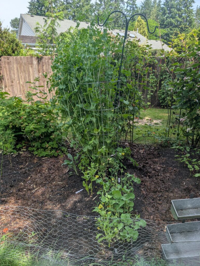 Now for the garden, I’ll start with what is doing really well! Peas and potatoes!! We have blossoms on both, but peas are starting to ripen.