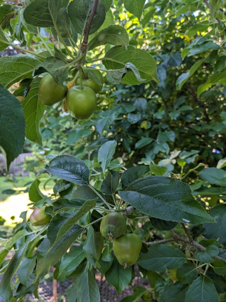 For the other stuff that returns or grows every year, our apples are coming in well on 2 of our 3 trees. The tree in the middle was pruned quite a bit this winter, so I think it’ll be fine next year.