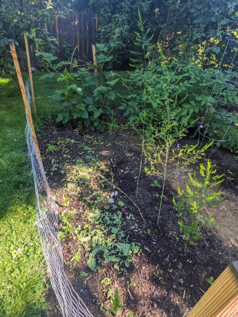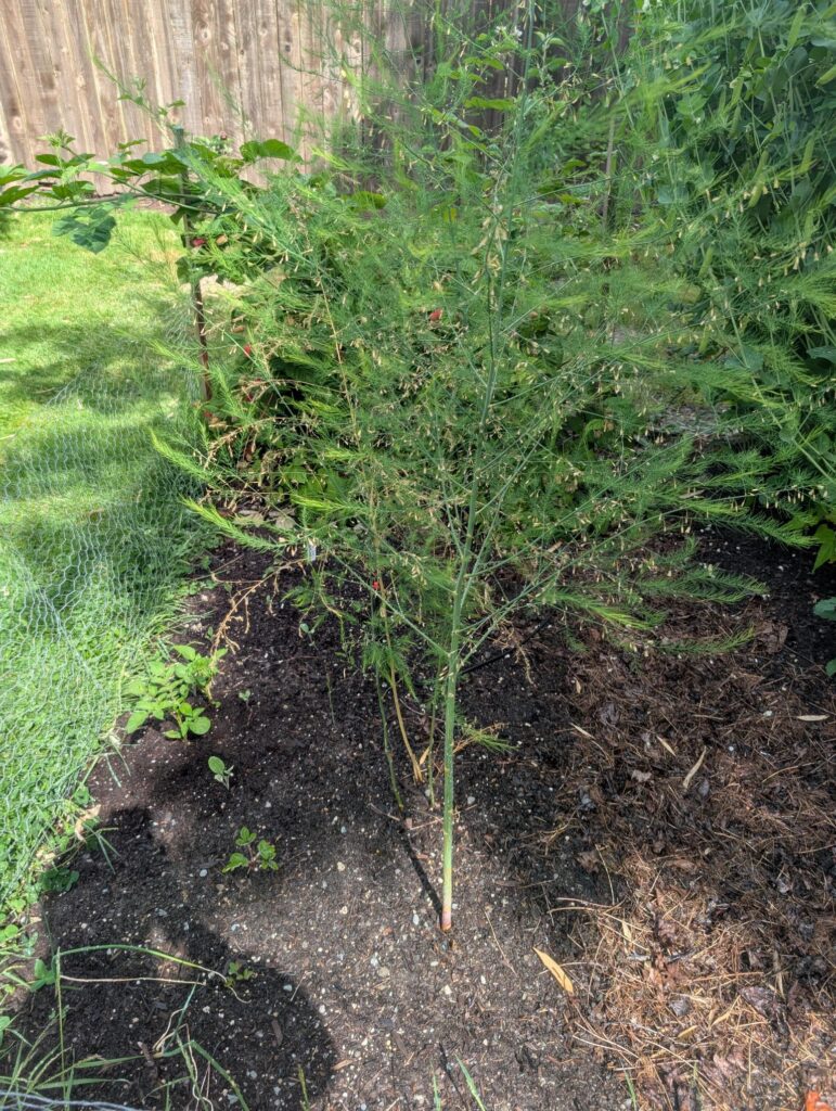The asparagus barely came up with a whopping total of 6 stalks but what came up grew and is going to seed. I’m hoping that it will help replenish the crowns underground and we’ll get a lot more next year.