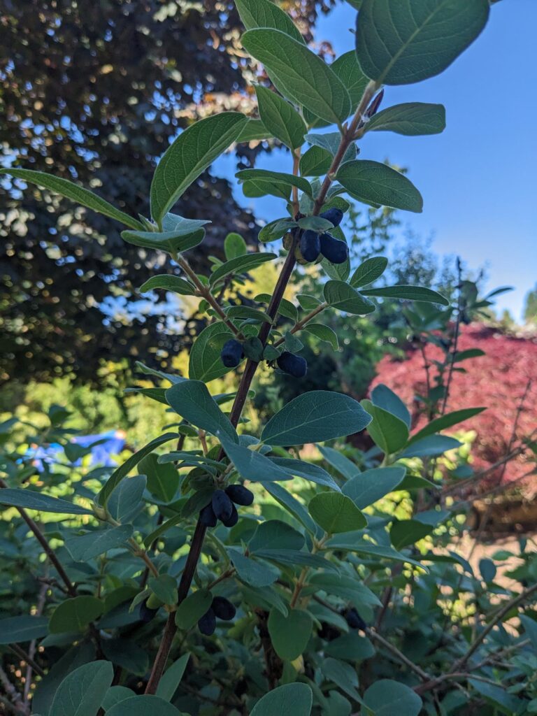 Just today, I picked over a half pound of honey berries (haskaps). There are more on the bushes that will be ready for harvest in the next couple of days.