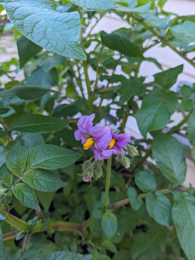 Have you ever smelled a potato blossom? I wish I could provide you with a scratch and sniff picture because they smell AMAZING!