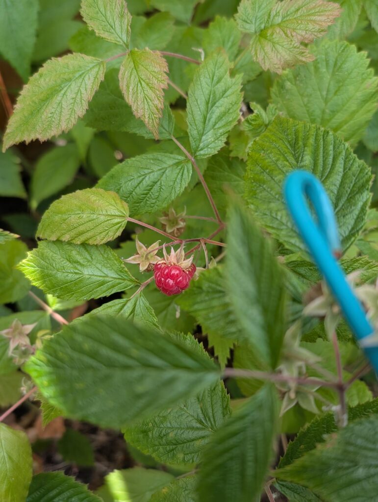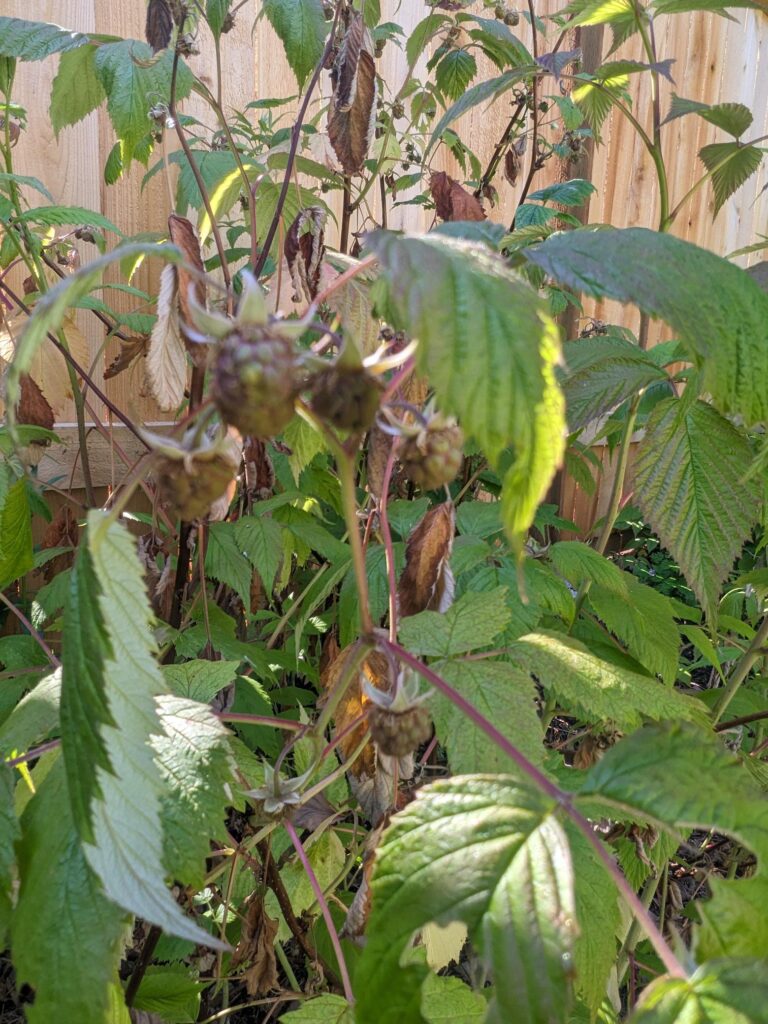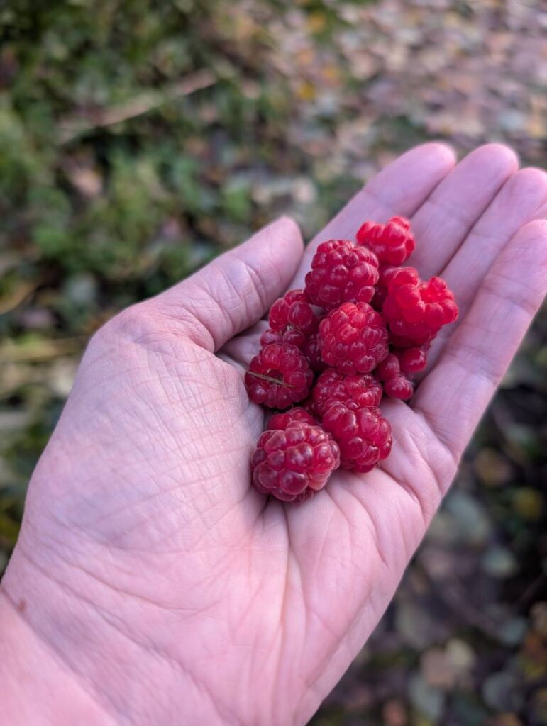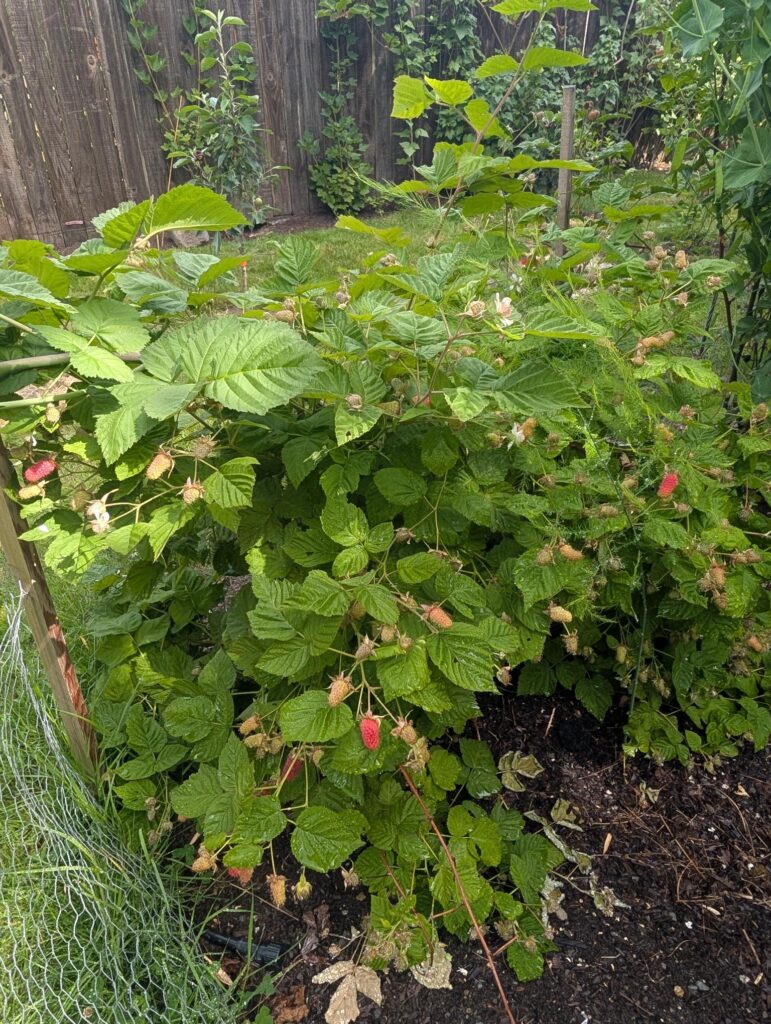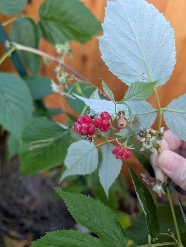 Surprisingly, I’m still getting some raspberries. About every 2-3 days, I can go pick a small handful and get about a half an ounce.