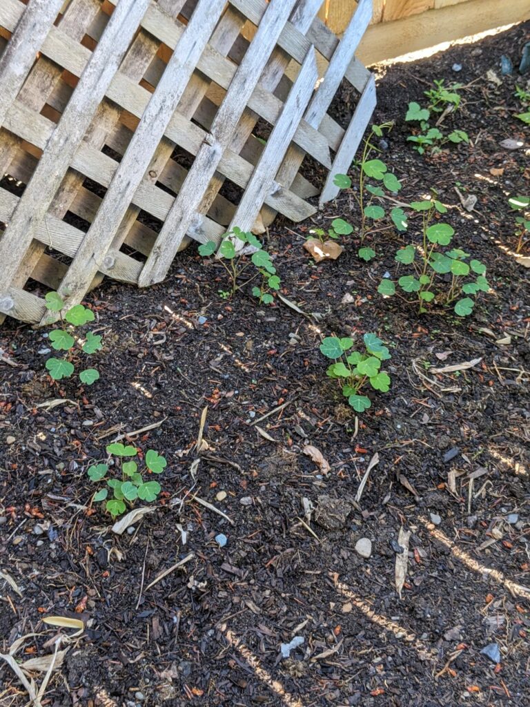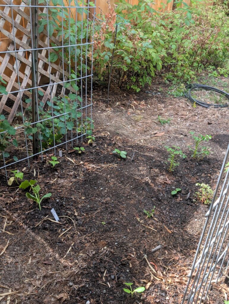 Spinach has been planted in 2 different places. I’ve done multiple plantings in both spots, but so far they’re only so-so in how it’s coming in. The larger garden area seems to not be very hospitable to spinach.