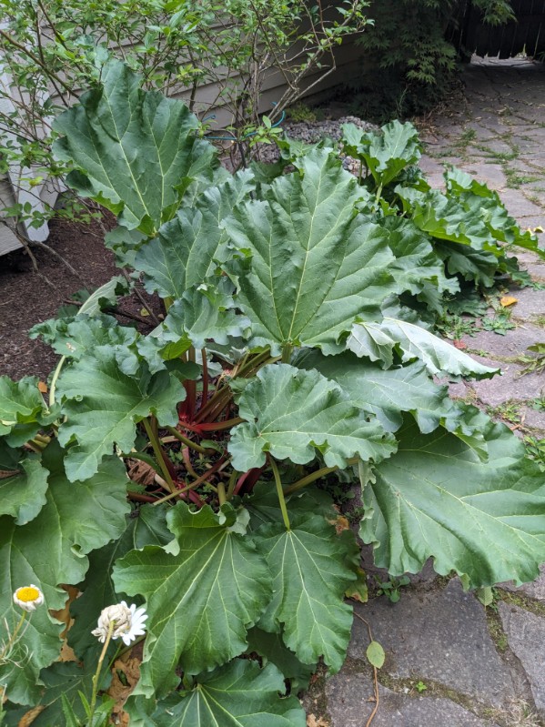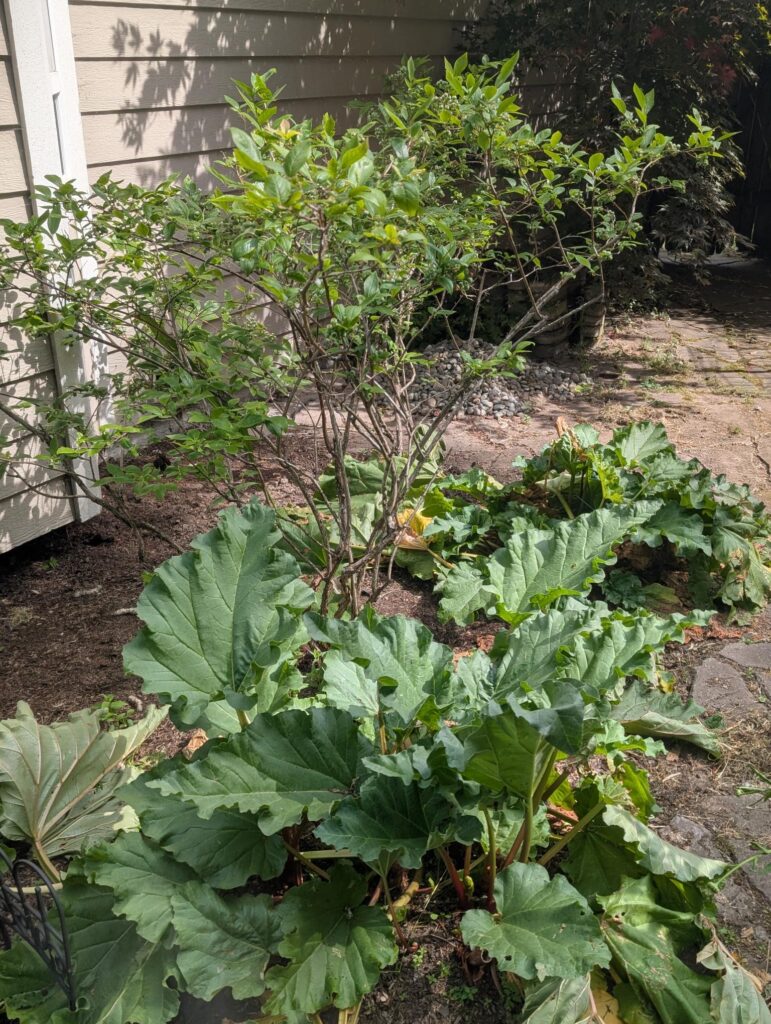 The rhubarb on the side of the house has come back strong this later summer time. I won’t be harvesting anymore this year as I have a ton in the freezer. Rhubarb, the food that just keeps giving when you don’t really want any more! 😛