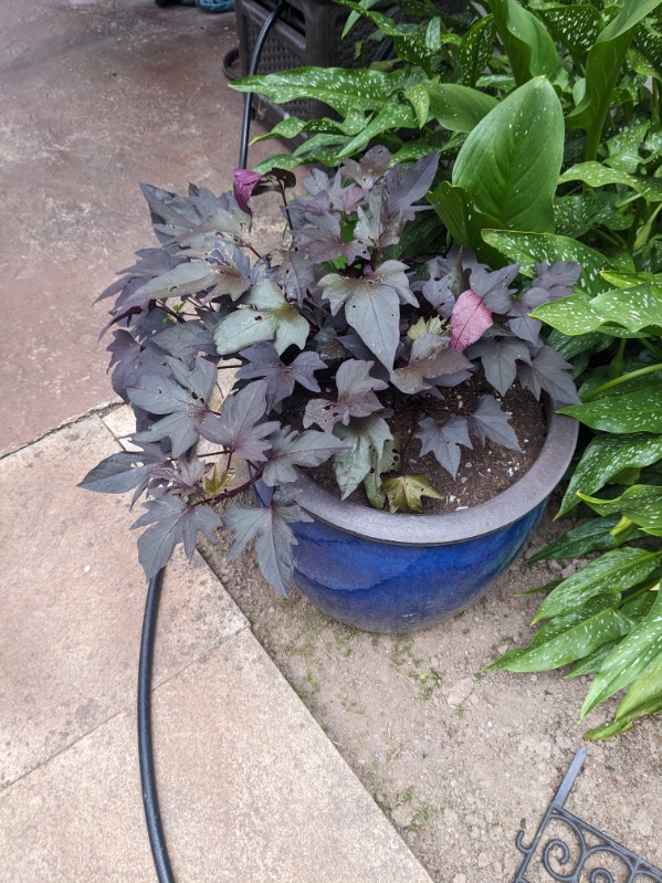 The Sweet Potato in the pot appears to be doing well, but I can’t see what’s happening under the soil. Time will tell.