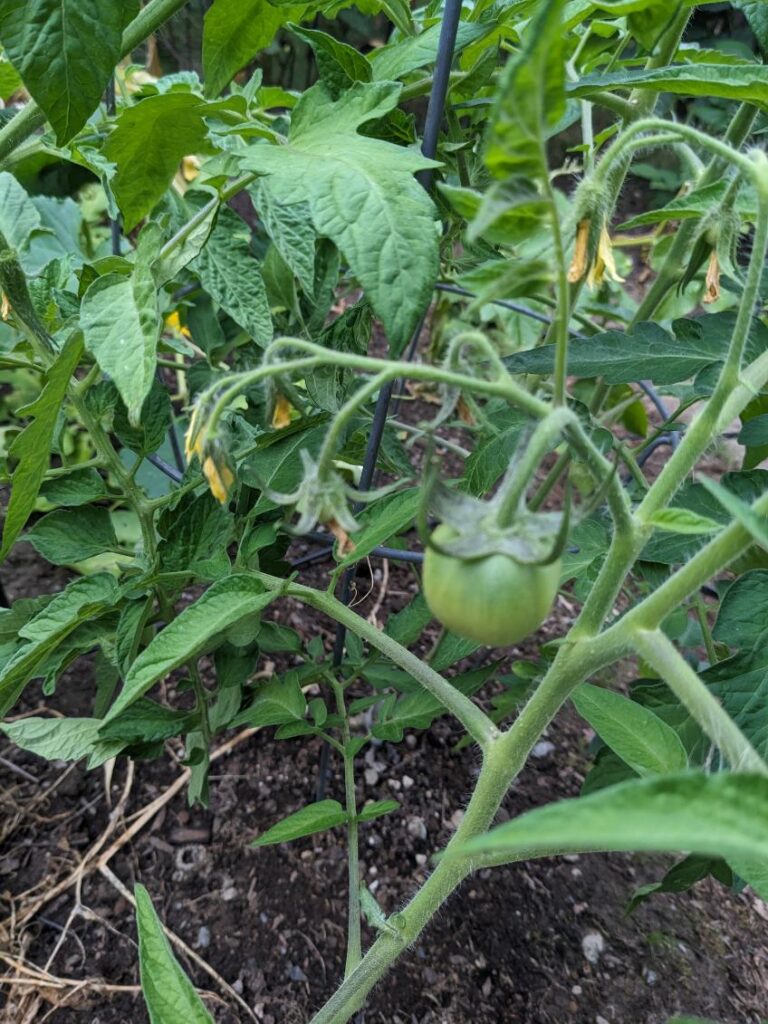 We have a tomato, but I’m seeing several other plants are blossoming and starting to grow the tomatoes. Now, I’m hoping we still have enough summer left for them to finish ripening. I don’t think we live in a place that big tomatoes flourish. We don’t get enough hot weather for long enough. Next year, I’ll stick to smaller varieties – cherry or maybe try some smaller paste tomatoes.
