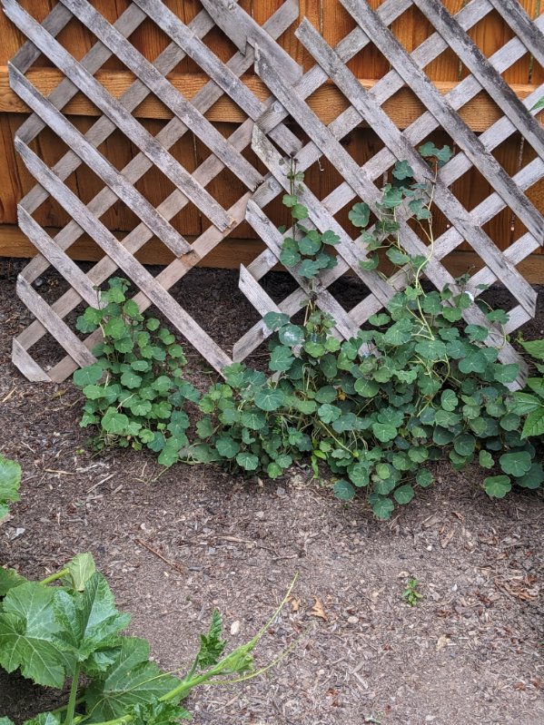 The delicata squash is growing beautifully! This is a good example of how much of a difference new seeds make. The seeds used were harvested from a squash I purchased at a farmers market last year. Blossoms have started showing up, we’ll see how quickly the squash develop and grow.