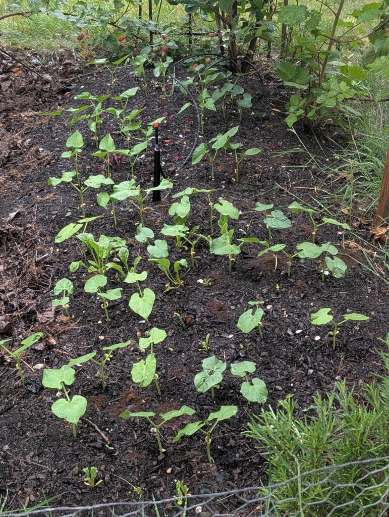 There is plenty of room to get some things planted for fall. The potatoes in the garden are doing well. There’s a small patch of peas that are about a month behind the other peas. And the black beans seem to be coming out of their slug-eaten state and are growing new leaves.