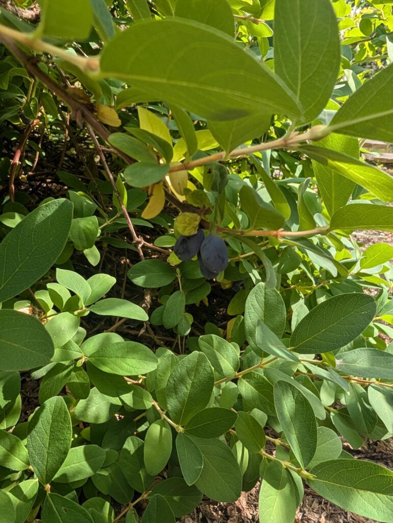 The honey berries are starting to turn purple and ripen. These are the first berries to ripen and they’re quick to ripen. (Kind of like an avocado – “I’m ready!!!!” 30 seconds later, “sorry, now I’m over ripe. You missed it.”)