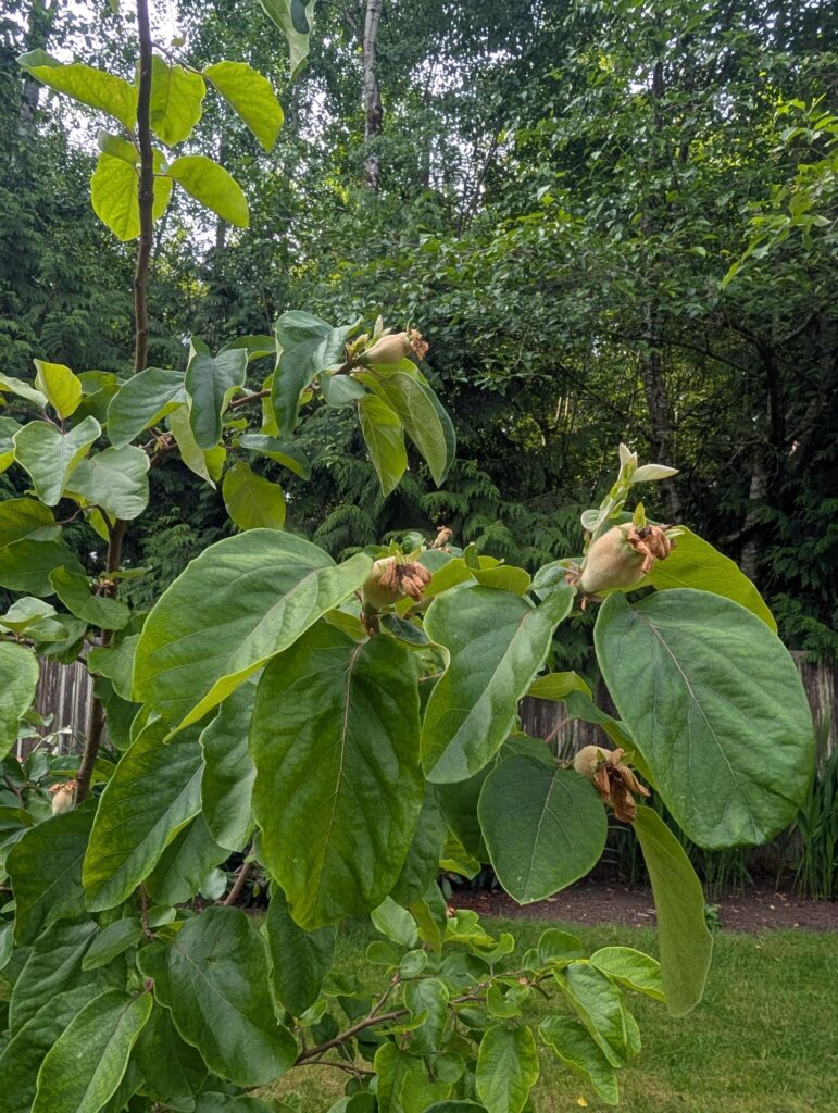 Goji berries are going crazy and starting to ripen. The quince tree has lots of little quince growing. And the tomatoes are in the ground. (I have basil and parsley planted nearby. These were from seed so they’re VERY behind)